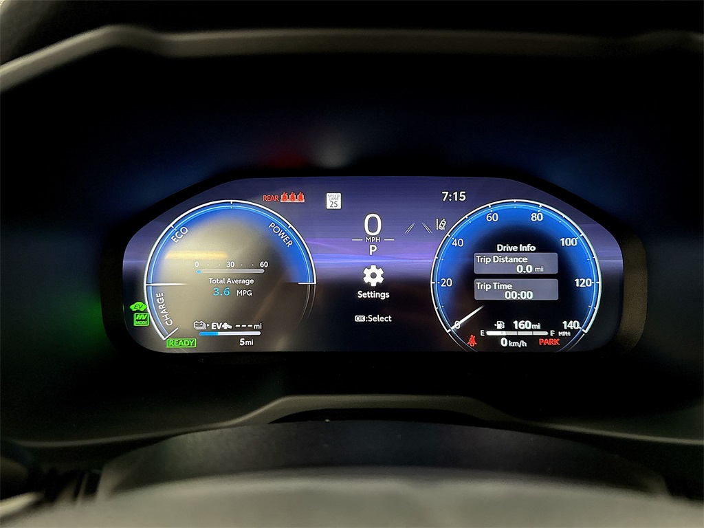 - 12.3-in. digital gauge cluster with customizable settings, odometer, tripmeters, clock, outside temperature, rear passenger seatbelt indicators, fuel gauge, hybrid energy monitor, battery charge meter, fuel economy information, trip timer, shift-position and scheduled maintenance indicators, and warning messages