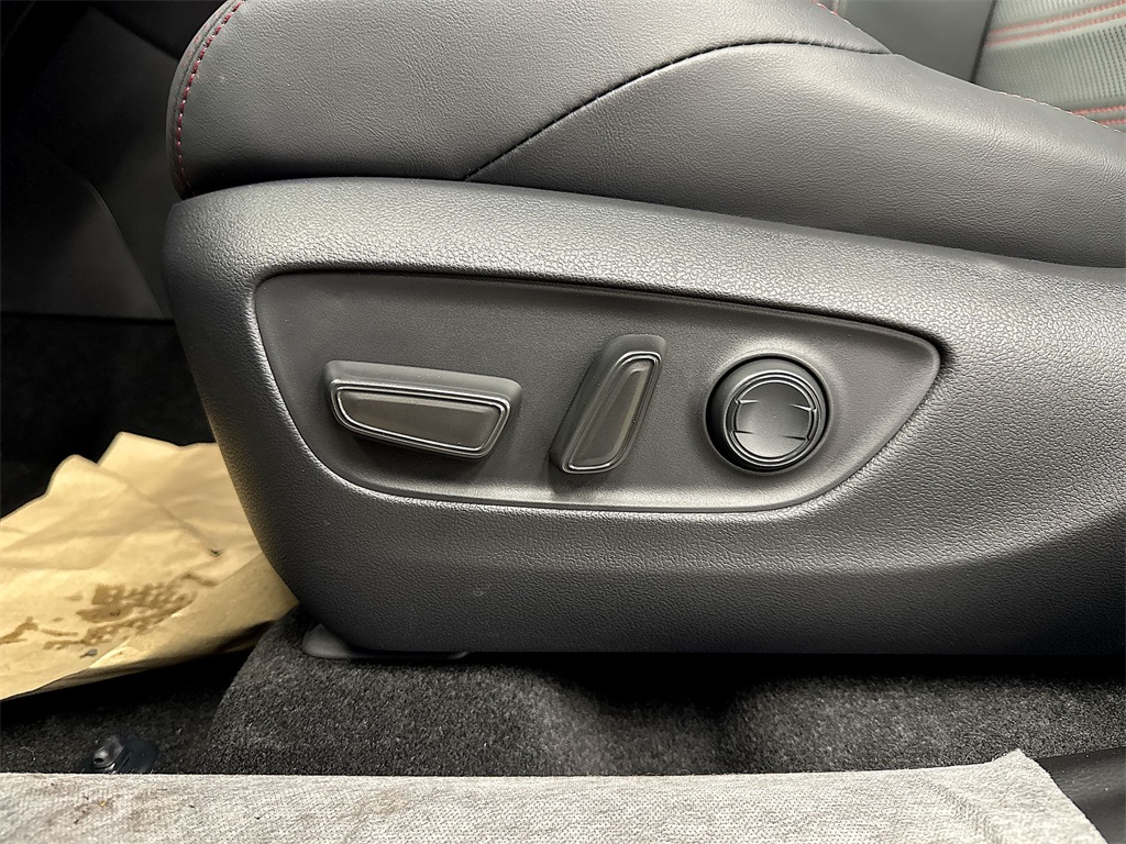 - SofTex®-trimmed seats with sporty red stitching and fabric seat inserts; heated front seats; 8-way power-adjustable front driver's seat with lumbar support and seatback pocket; 4-way adjustable front passenger seat with seatback pocket