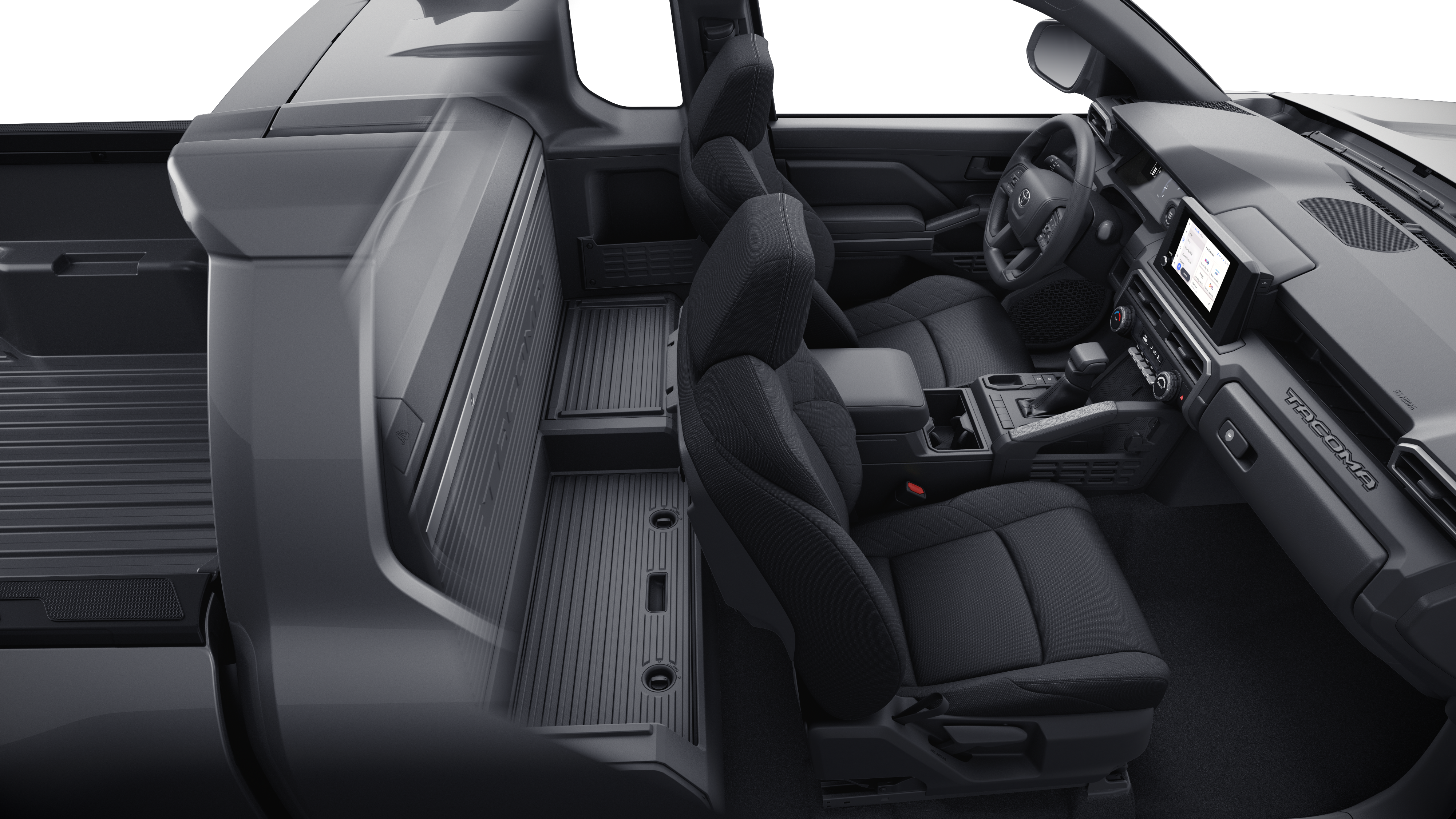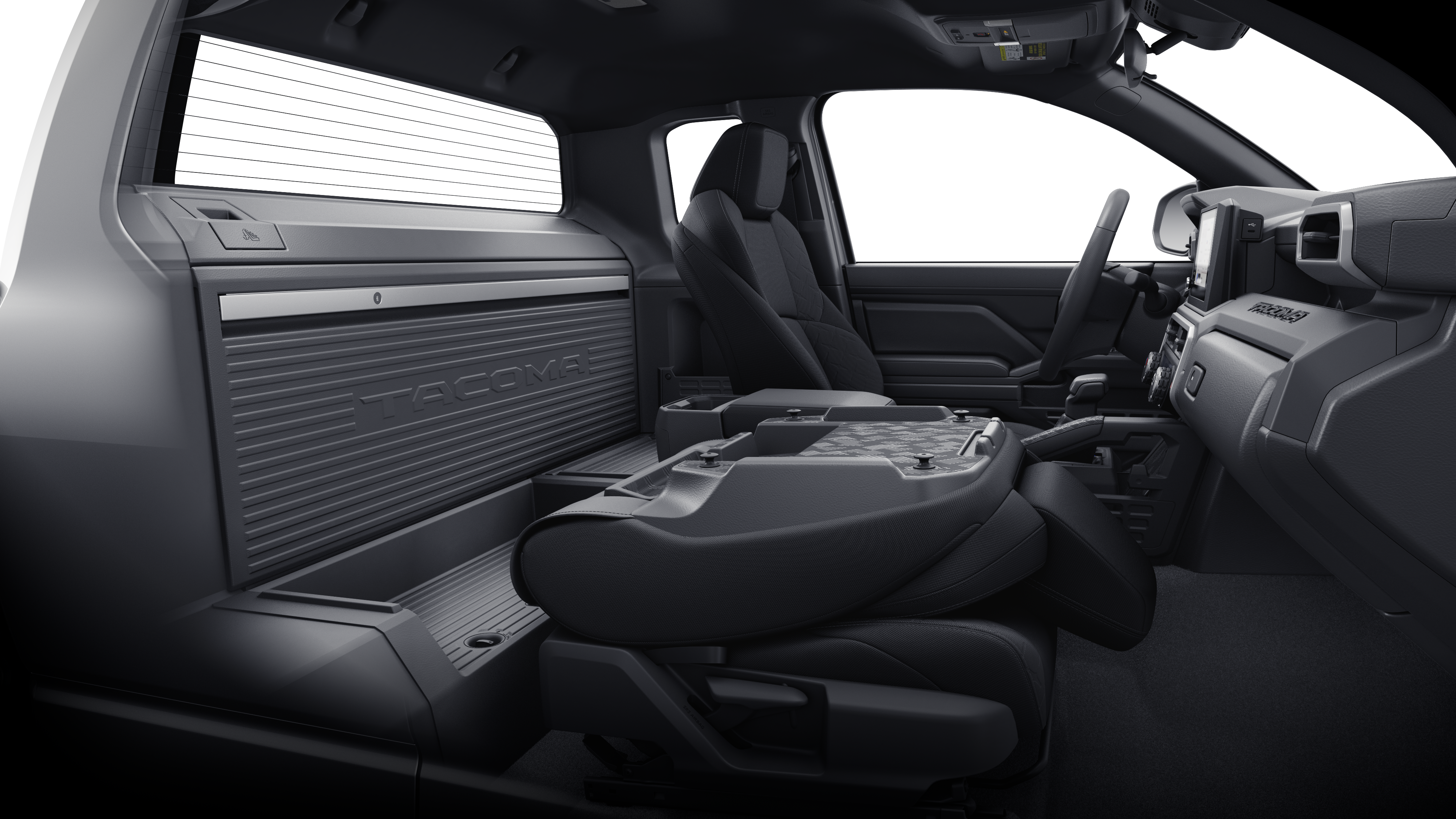 - Fold-flat passenger seat, lockable rear storage panel with integrated pegboard, and lockable deep storage compartment