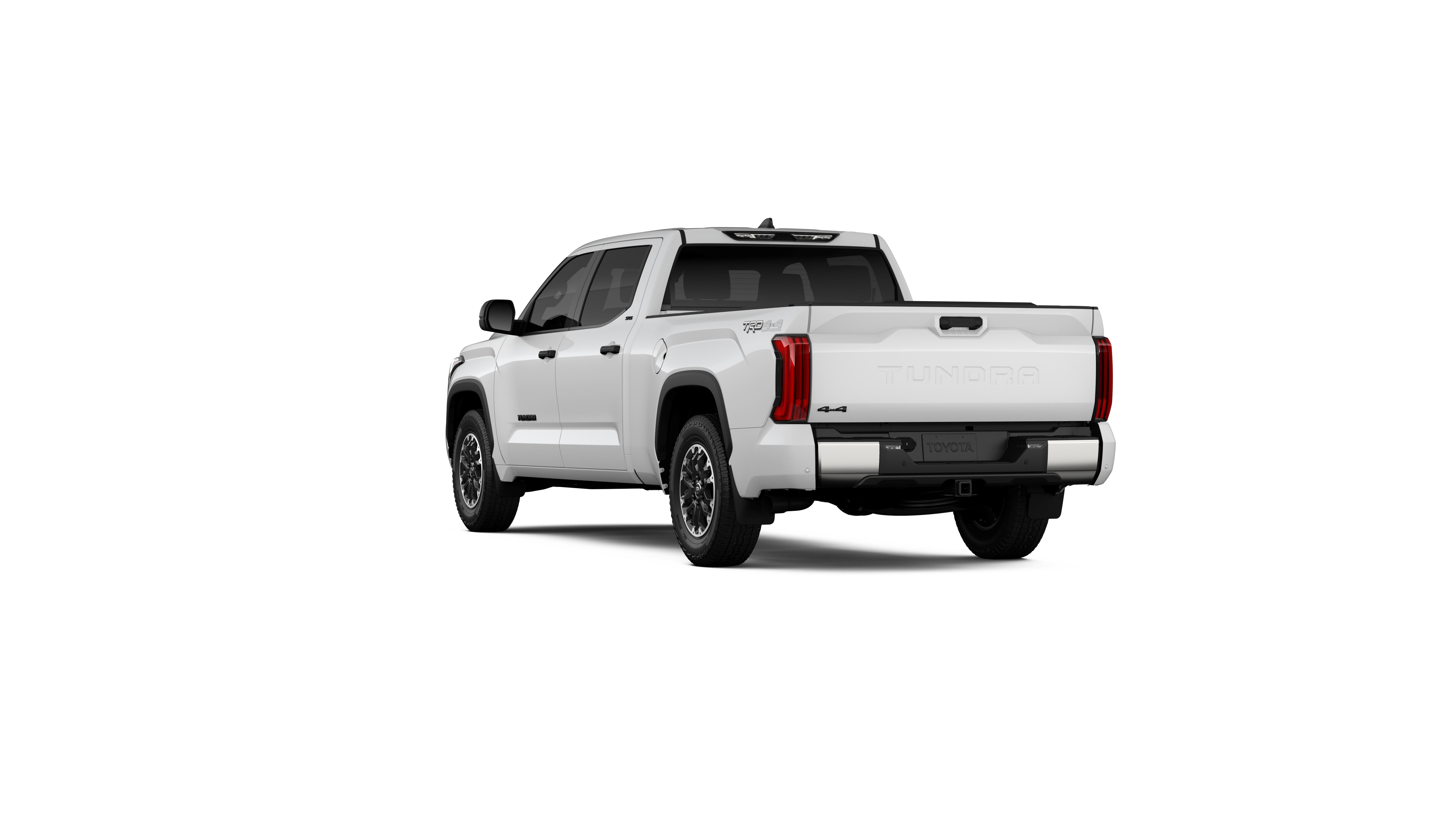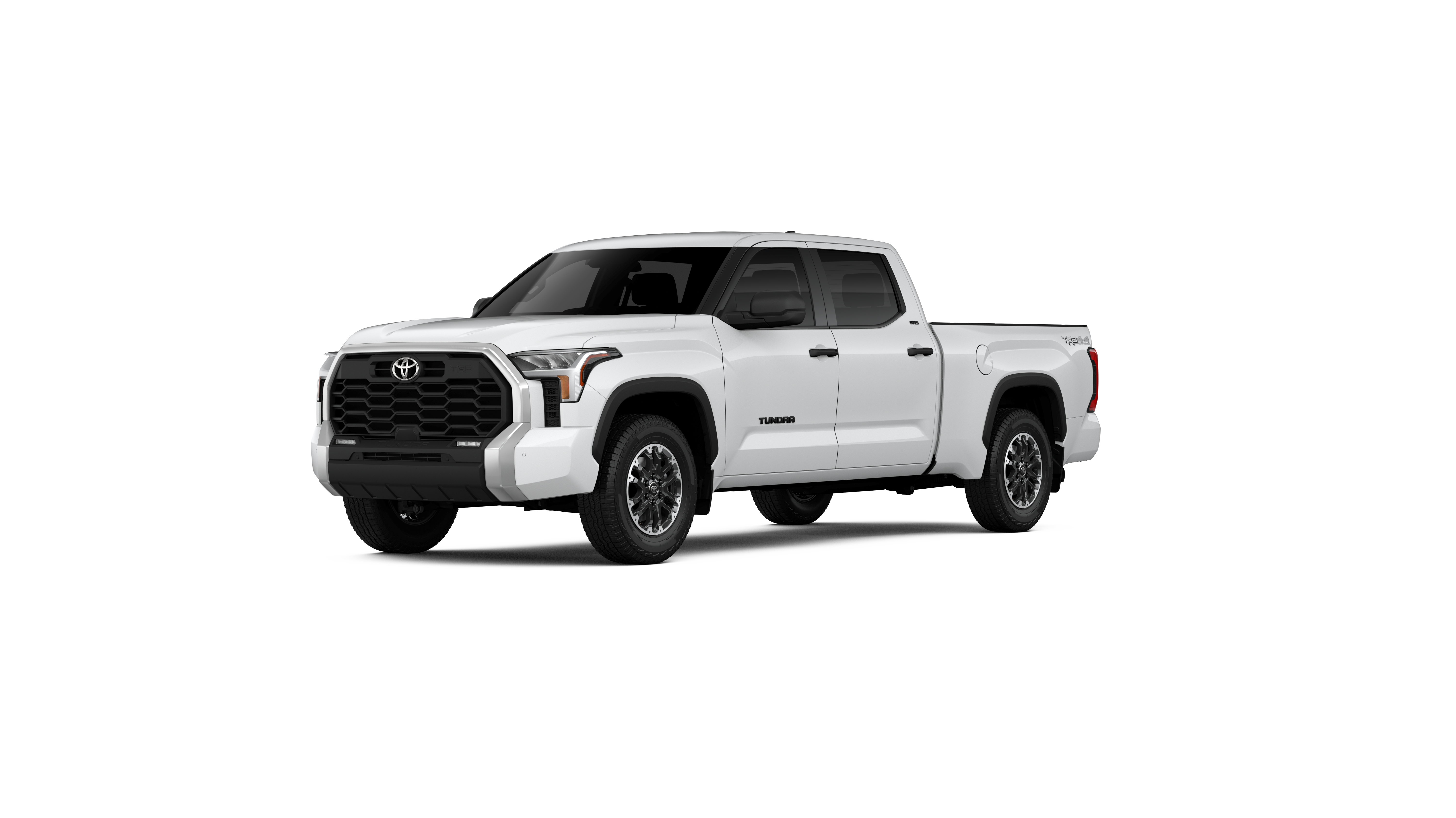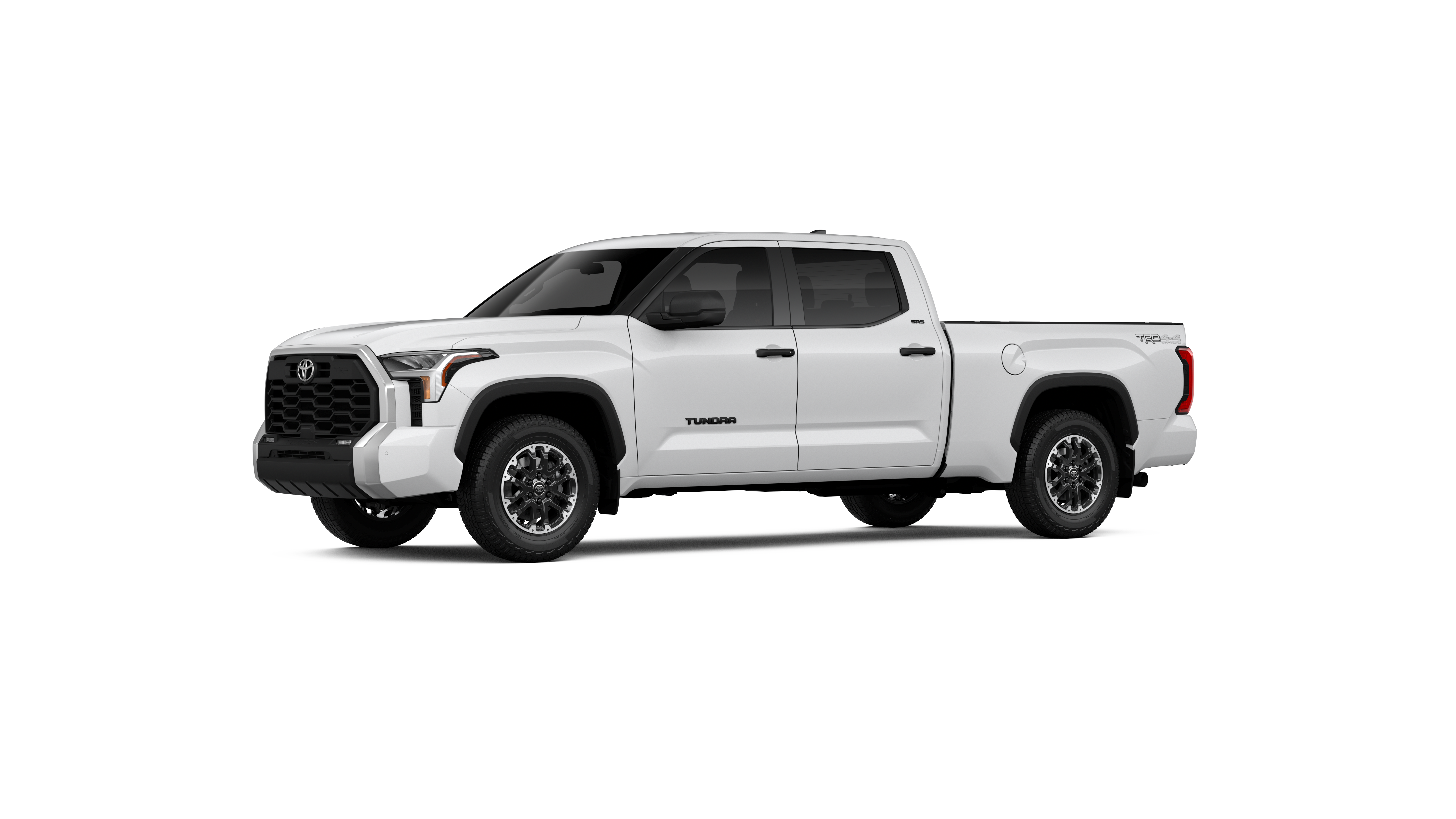 - Chrome "TUNDRA" and "SR5" door badges; black door handles, window molding, mirror caps, tailgate spoiler and overfenders