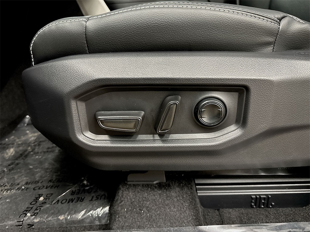 - Leather-trimmed seats with contrast stitching; 8-way power-adjustable driver and front passenger seats with power-adjustable lumbar support
